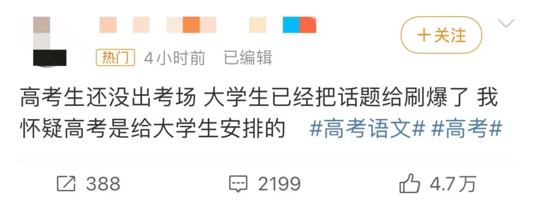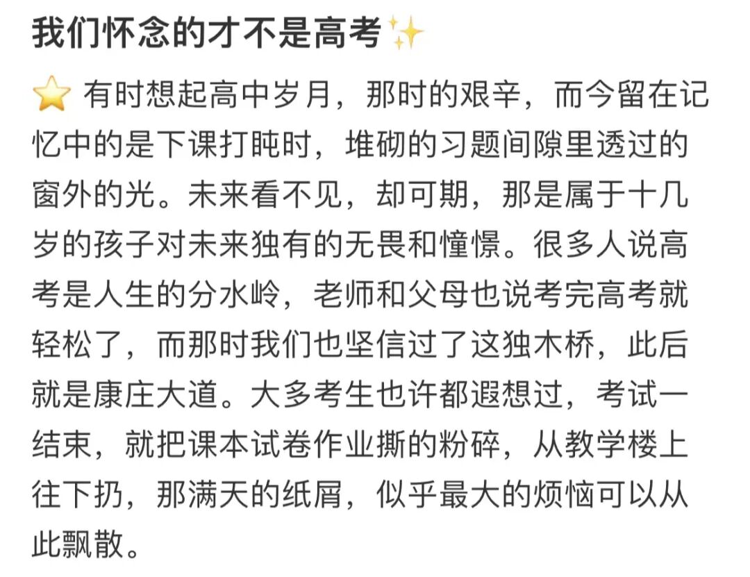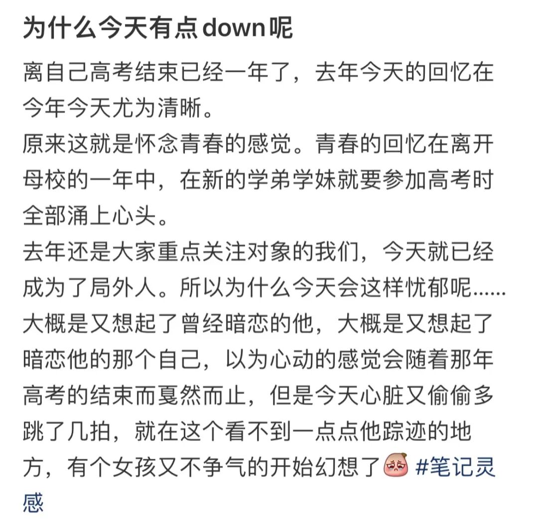 高考也许还是发挥失常后难以和解的执念,坐在大学宿舍里看到高考热搜,心里依然会揪起来,不想点开词条,不想看到大家热热闹闹地过年一样地讨论高考。