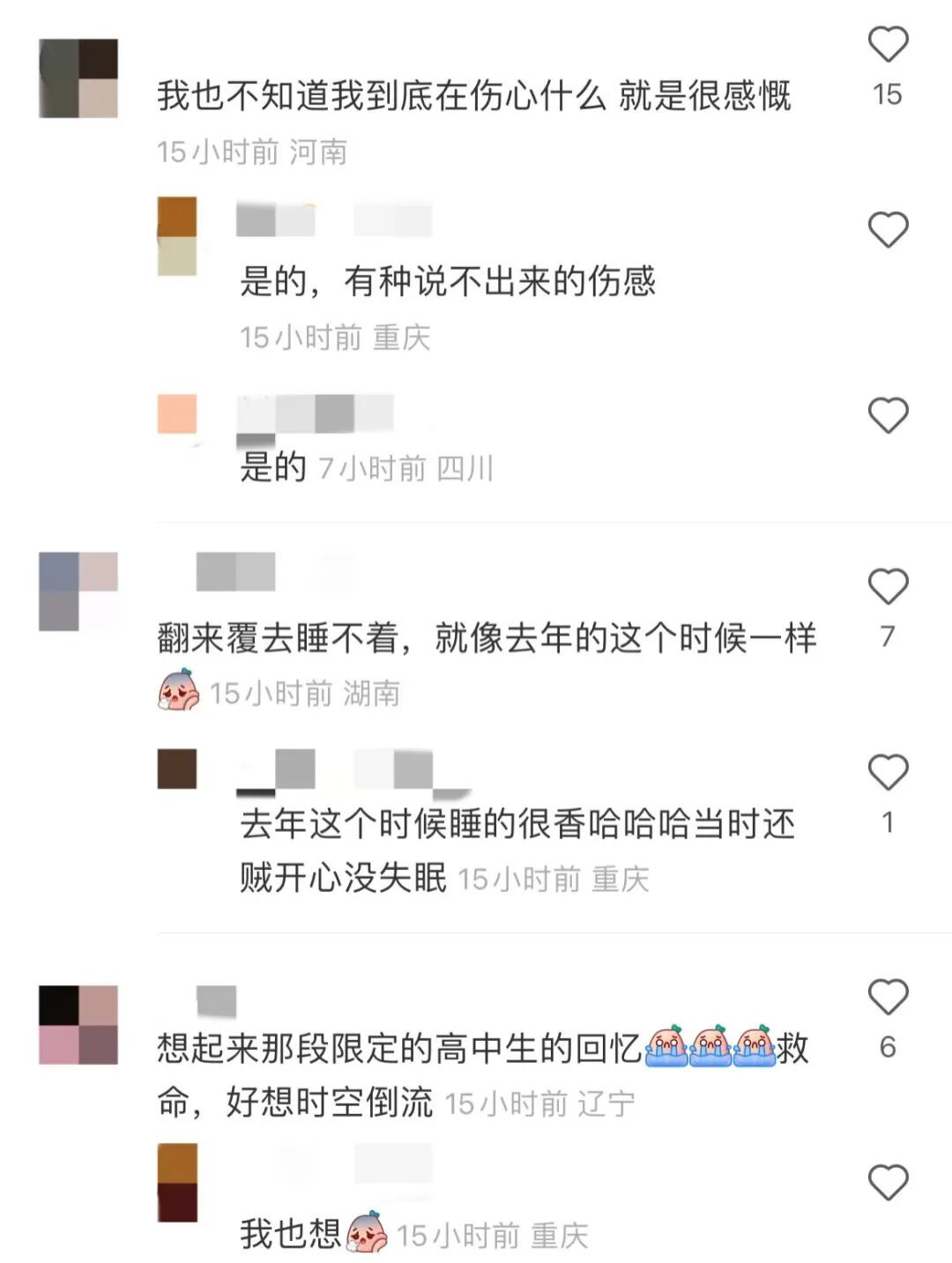 评论区有网友调侃:“想祝福,但字不会写了。”高考交卷那一刻好像把脑子也一起交上去了