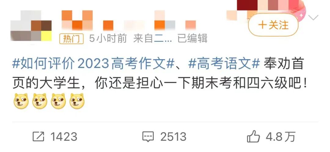 今天是高考第一天,不出所料,高考热搜已被稳稳押中——“高考作文”“高考试卷”“2023年高考第一个丢准考证的同学”......