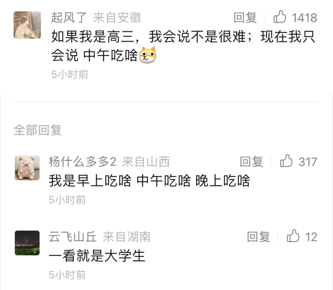 如果我是高三,我会说不是很难。现在我只会说:中午吃啥?