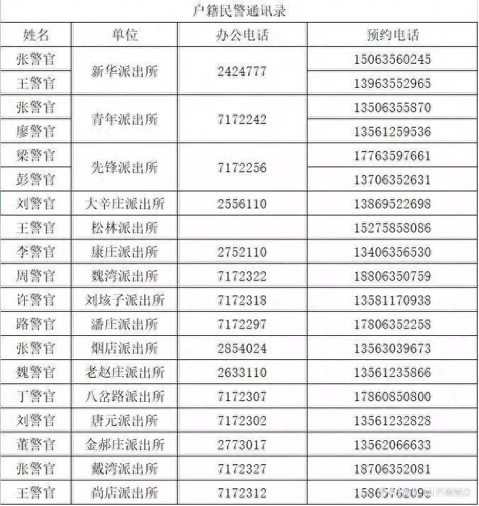 如需预约服务及咨询服务可拨打下方临清市公安局各派出所户籍民警电话进行预约咨询。