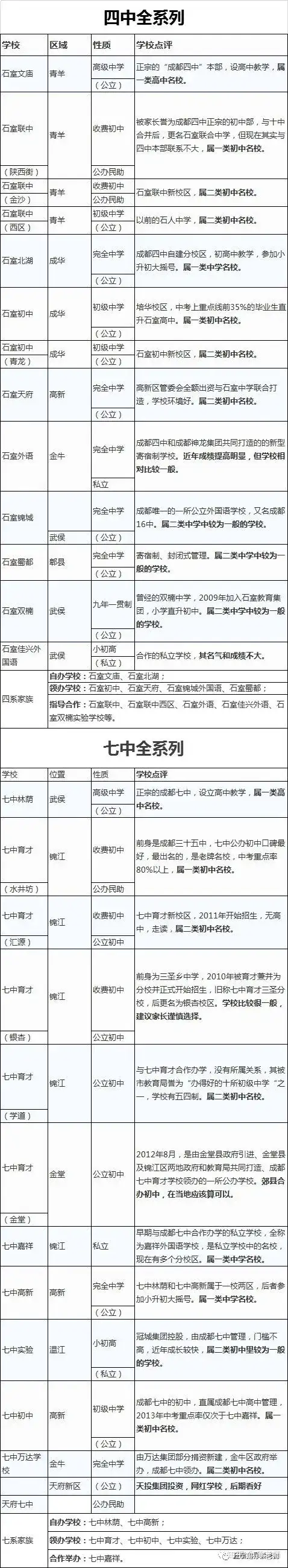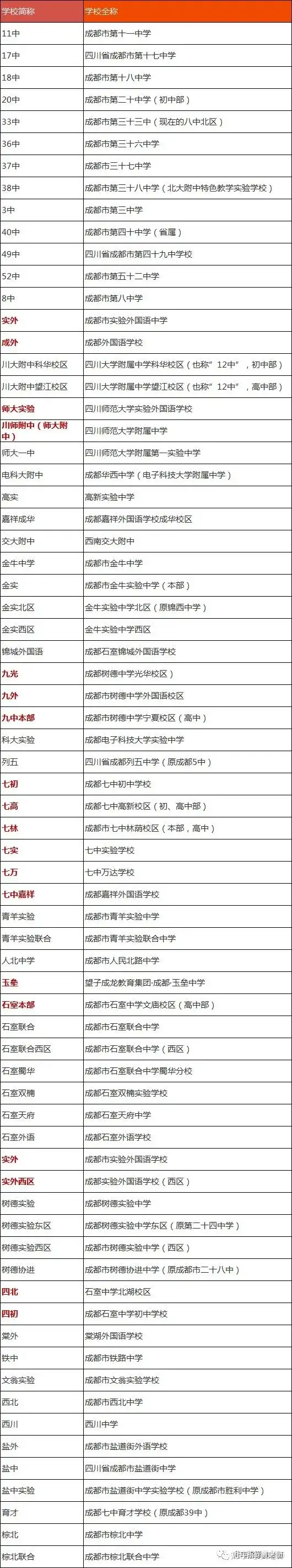 成都的中学特别多,为了方便大家容易记忆交流方便,