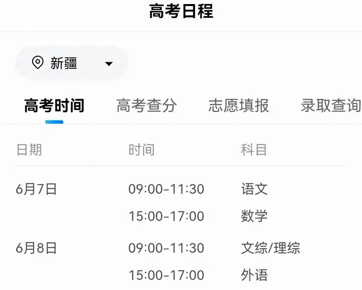 在这里有新高考(北京为例)和高考时间表(新疆为例),以供参考