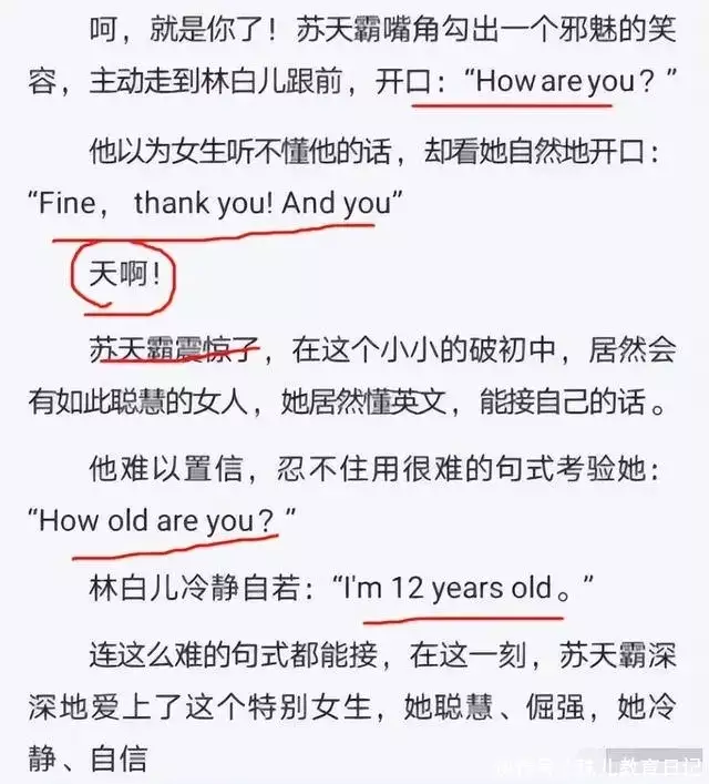 就算是剧情再玄幻,也不至于太离谱,当看到下面的这篇网文后,才发现上面的小学生还算是正常,至少这段英文对话是没有问题的。