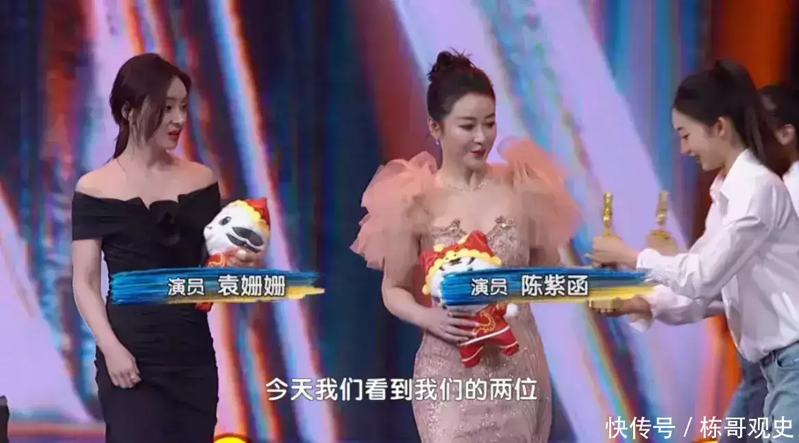 陈紫函与袁无无弓网络科技姗姗这次出席活动,是为庄达菲和李雪琴颁奖。