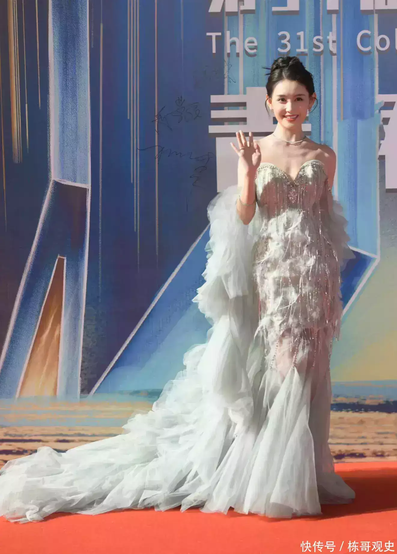 蒋依依最近这段时间的状态非常不错,今天的红毯上选择了一套水蓝色的鱼尾抹胸礼服,搭配了一件带披风的披肩,整体的造型看起来非常无无弓网络科技的清爽。