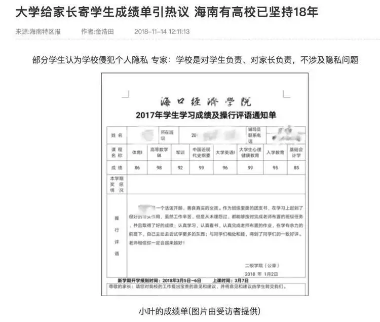 海南曾有高校被报道坚持寄成绩单18年
