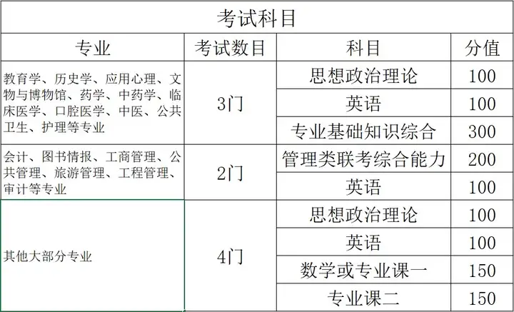 一般情况下考试科目为四门,但是有部分专业硕士 考三门或者考两门