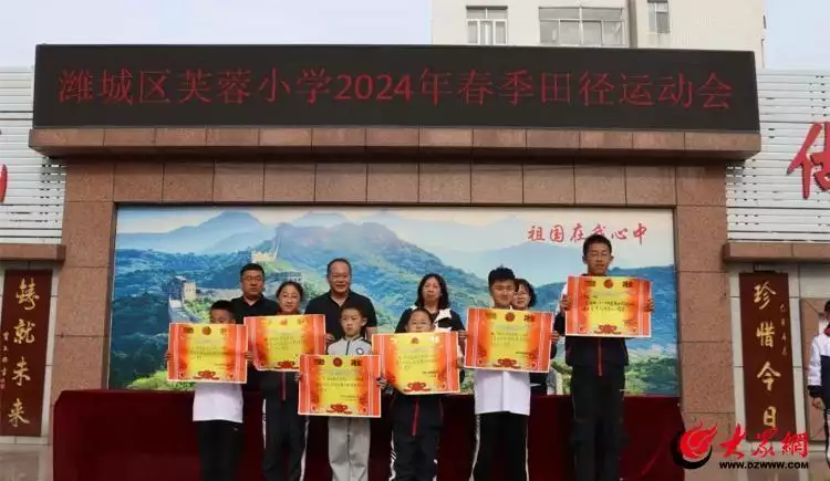 在全体运动员、裁判员、工作人员的共同努力下,经过一天的激烈比拼,本次运动会圆满成功。潍坊市潍城区芙蓉小学副书记发表了闭幕词,并举行了颁奖仪式。
