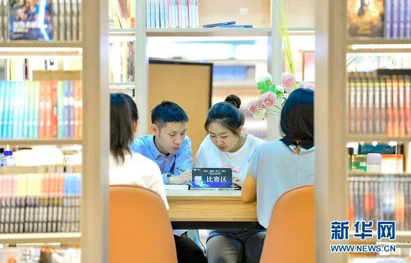 大学生在阅读马拉松比赛中进行学习交流。新华网发 王正摄