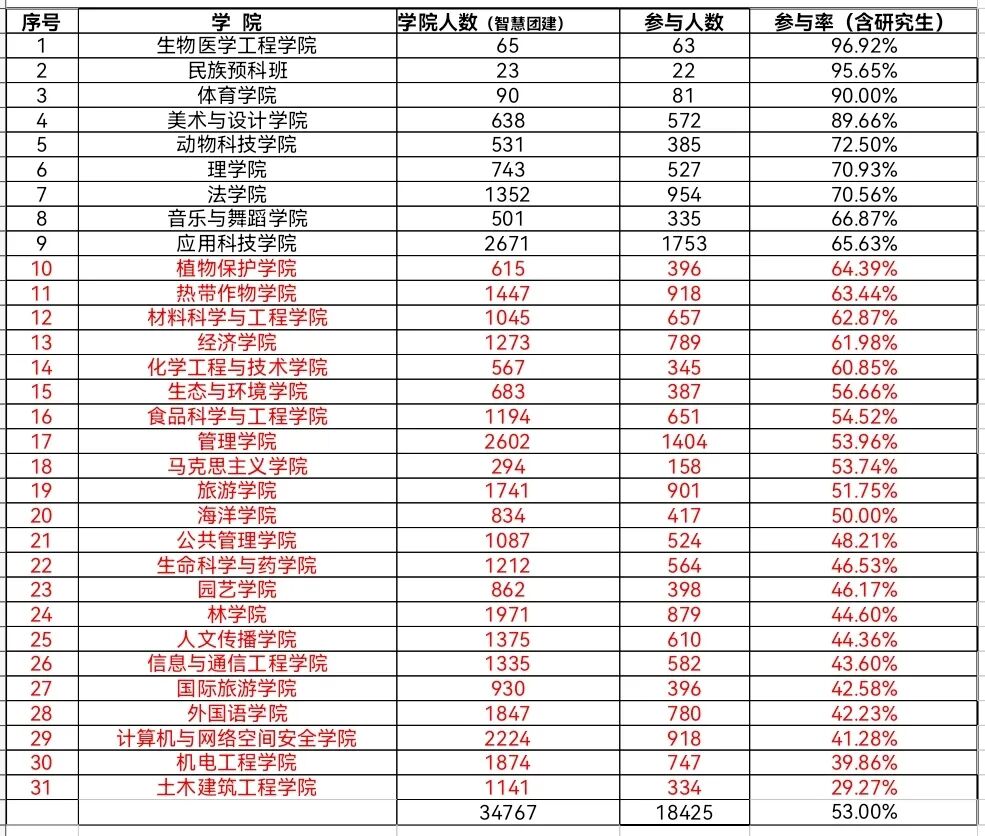 让我们一起来看看海南大学上一期各学院的学习排名情况